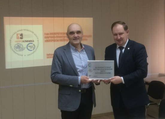 9 декабря 2017 года состоялась первая дальневосточная межрегиональная научно-практическая конференция «Вопросы нейрореабилитации». В организации и проведении конференции принимали участие три ведущие организации, занимающиеся практической, методологической и учебной деятельностью по нейрореабилитации и на Дальнем Востоке: «Нейроклиника», МООСБТ, ДВГМУ.